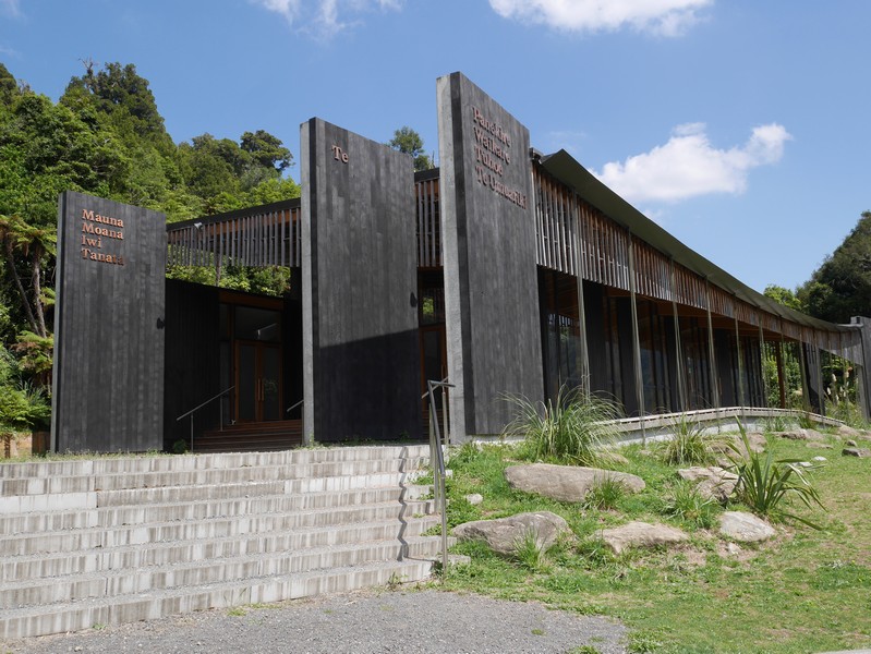 The area, ancestral home of the Tuhoe people, has a visitor centre that is, quite simply, beautiful. We would have liked to stay at the camping ground but all the cabins were booked out. It’s a popular four-day walking track around the lake, and the lake is also popular with fishers and boaties. I think there may have been dorm-style bunk beds available but, mindful of our six-bunk overnight train trip to Hamburg a few years ago, we opted for the two motel nights in Wairoa instead. But, a place to go back to.