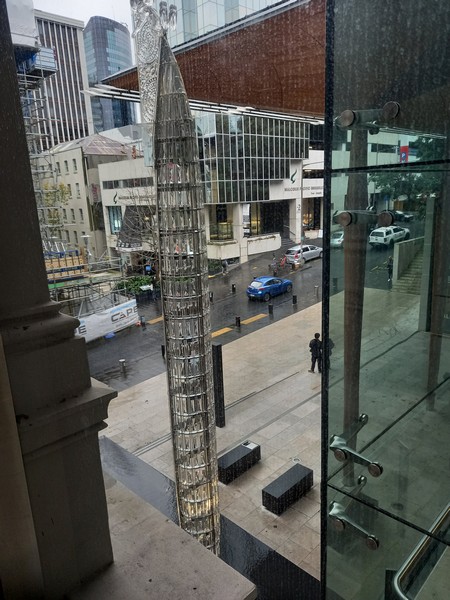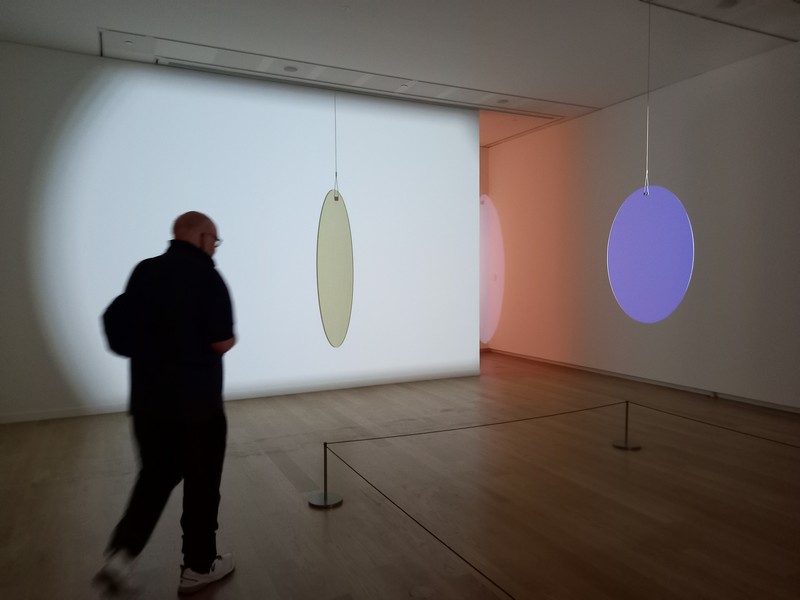 Once back in the central city, we checked out the library and the adjacent art gallery. At the gallery, we happened upon a superb exhibition of works from the Tate in London, entitled Light from the Tate: 1700s to Now. I’ll include a few photos but they don’t come anywhere near doing justice to the works, so I suggest you go online and check it out (see https://tinyurl.com/5n8a2nhp). If I had to name a favourite, it would be Yellow versus Purple (2003) by Olafur Eliasson, followed closely (in no particular order) by Liquid Reflections (1968) by Liliana Lijn; Interior, Sunlight on the Floor (1906) by Vilhelm Hammershel; Swinging (1925) by Wassily Kandinsky; and … just one last, though there are more I could include … Stardust Particle (2014) by Olafur Eliasson.